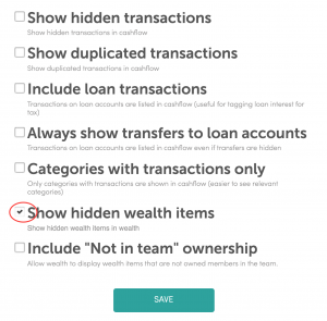 3. Ensure you tick the ‘Show hidden wealth items’ box.